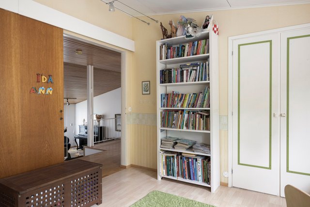 - Yläkerrassa kaksi tilavaa makuuhuonetta. Molemmissa alkuperäiset, niin hienot, tammiliukuovet! Sisääntulokerroksessa yksi makuuhuone. Alakerrassa tilava makuuhuone. Poreallashuonetta voi pitää vierashuoneena.