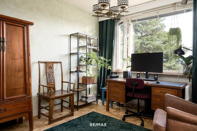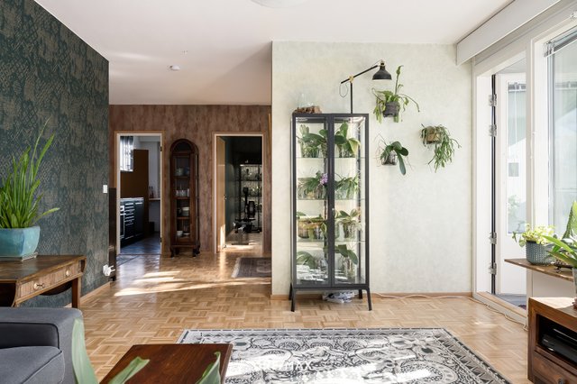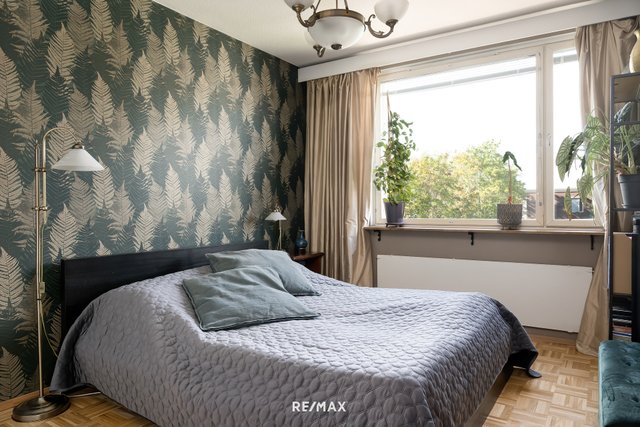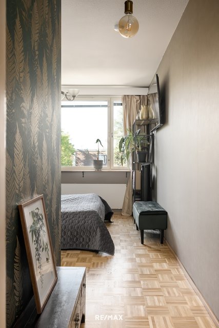 Tämä viehättävä ja valoisa sekä tyylikkäästi ja värikkäästi remontoitu ylimmän kerroksen koti koostuu kolmesta hyvän kokoisesta makuuhuoneesta, tilavasta olohuoneesta ja ruokailutilasta, wc-tilasta, kylpyhuoneesta, vaatehuoneesta sekä lasitetusta parvekkeesta.