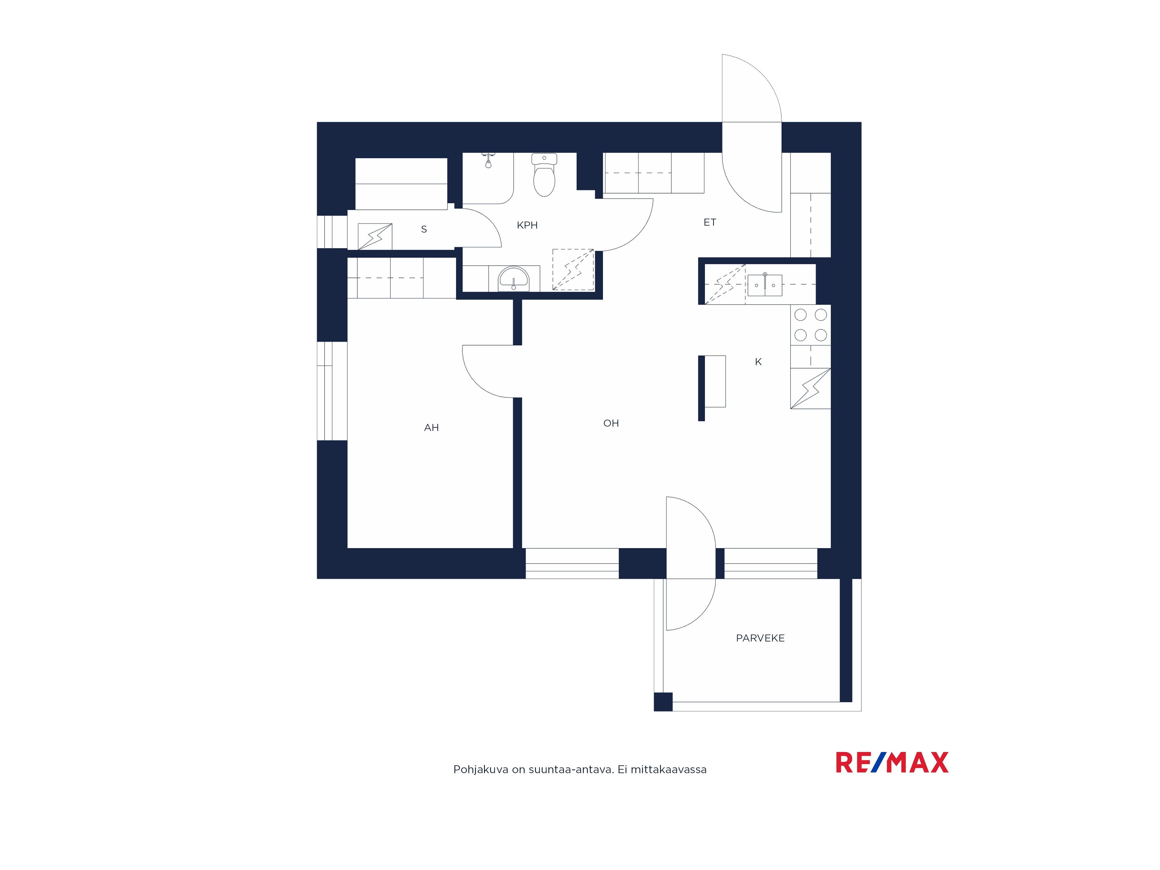 Asunnossa on läpikuljettava keittiö ruokailutilalla, avoin olohuone, josta pääset omalle lasitetulle parvekkeelle. Pesuhuone tarjoaa paikan pyykinpesukoneelle ja oma sauna kruunaa kokonaisuuden.