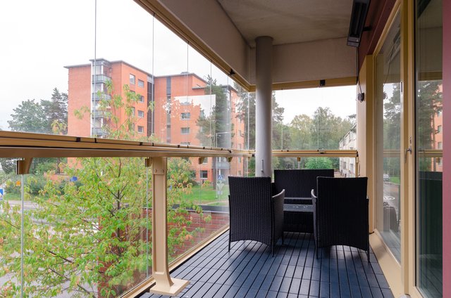 - Huoneistoon kuuluu 12 neliön lasitettu parveke. Erillinen tilava lämmin varasto, joka sijaitsee ylimmässä kerroksessa.