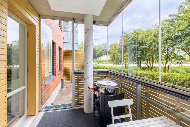 - Parveke on lasitettu ja lisäksi parvekkeelta pääsee kivitetylle terassille