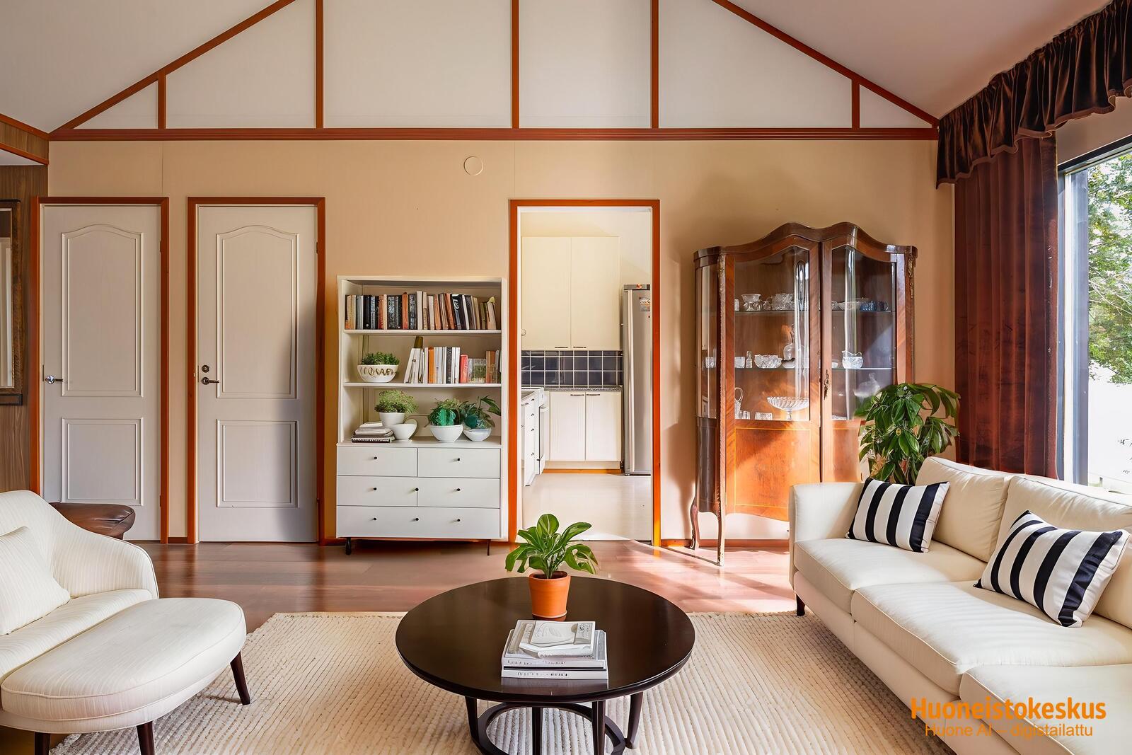- Huoneiston asuinpinta-ala on yhtiöjärjestyksen mukaan 105 m². Edellä mainittu pinta-ala saattaa tämän ikäisessä kohteessa poiketa olennaisestikin huoneiston nykyisten mittaustapojen ja standardien mukaan laskettavasta pinta-alasta. Huoneiston todellinen asuinpinta-ala voi siis olla yhtiöjärjestyksessä, isännöitsijäntodistuksessa ja esitteessä mainittua pienempi tai suurempi.