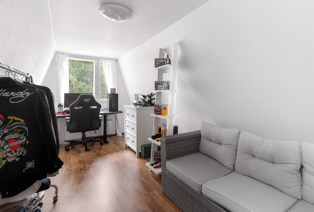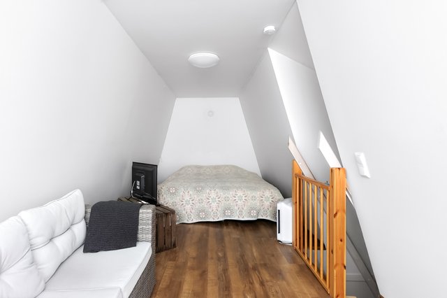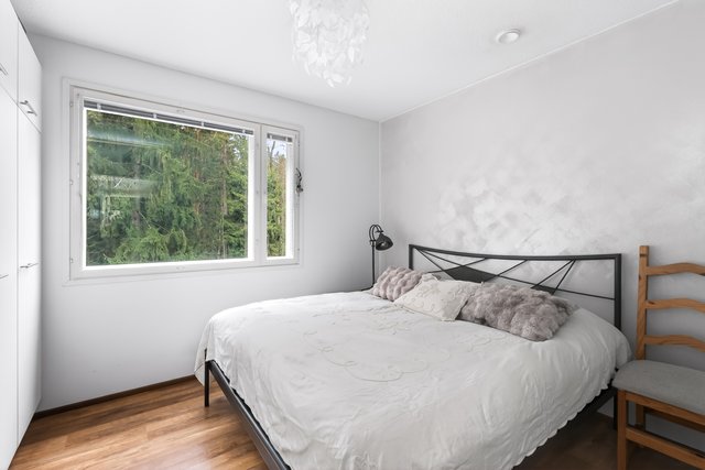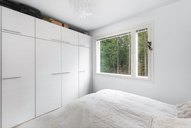 Makuuhuoneita on kolme, joista yhdellä on oma vaatehuone, sekä käyttöullakkoon kiinteät portaat.