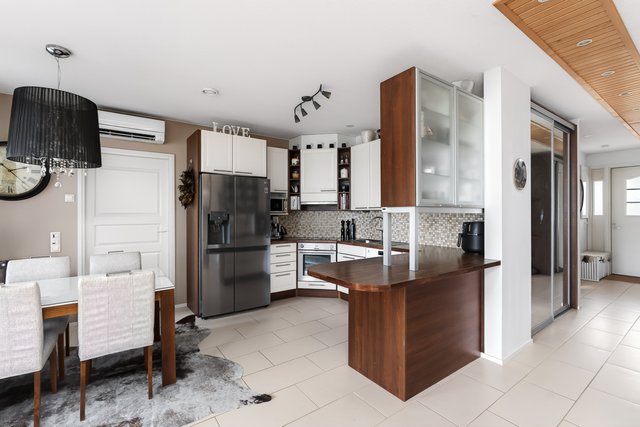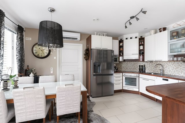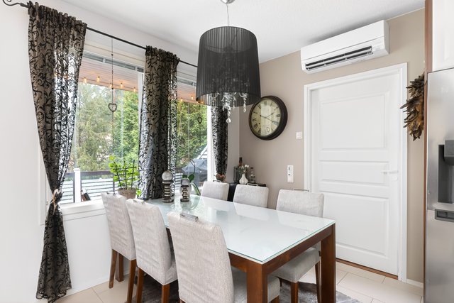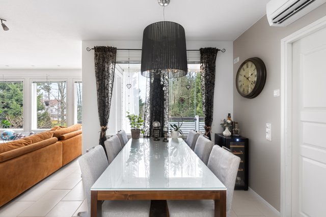 - Auki ruokailutilaan ja keittiöön. Kulku lasitetulle terassille.