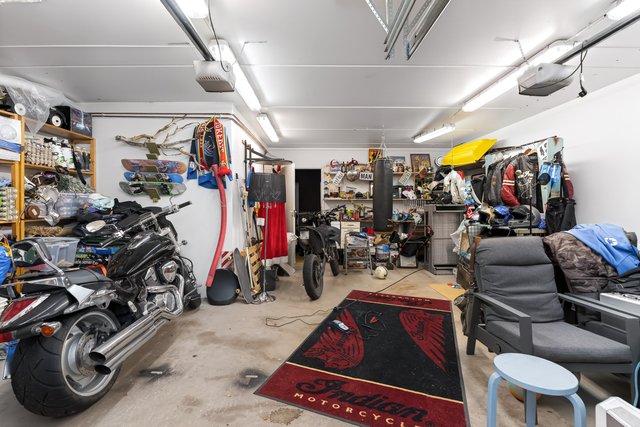 Alhaalla on vielä kahden auton talli kauko-ohjattavilla nosto-ovilla ja jonka takana on vielä iso varastotila.
