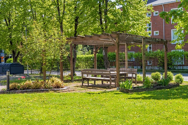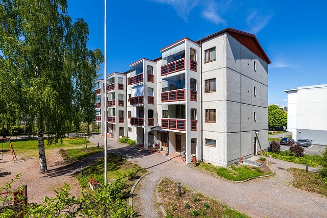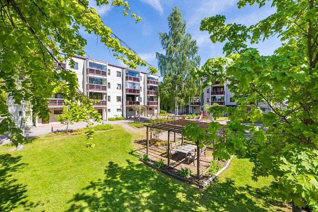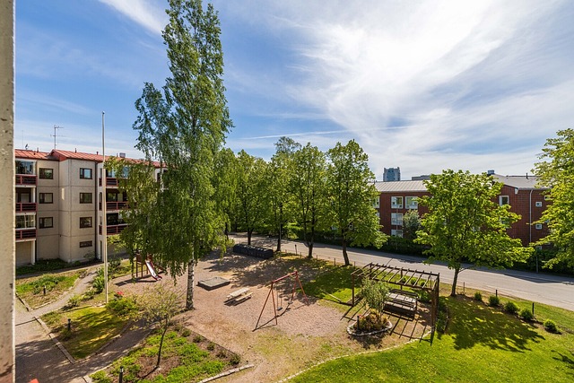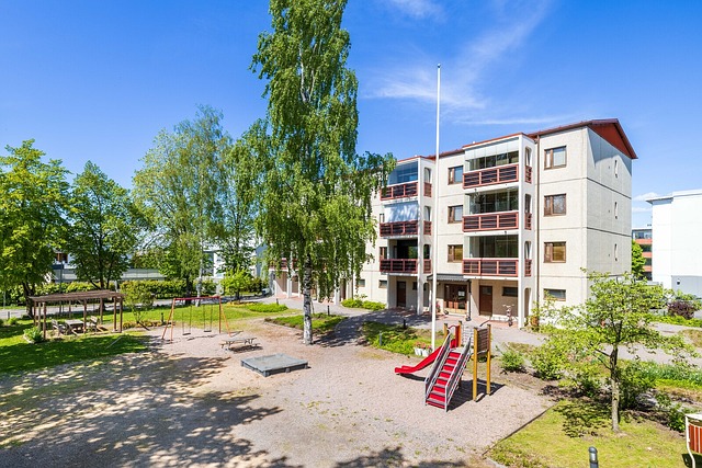 Hyvin hoidettu taloyhtiö sijaitsee omalla tontilla, jonka suuresta pihasta löytyy leikkipuisto ja pergola.