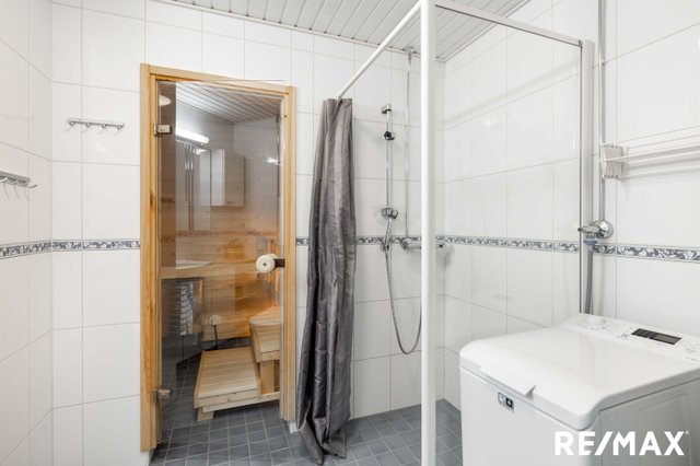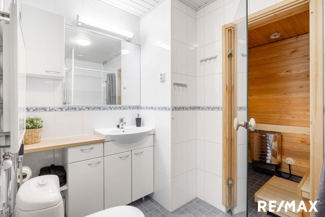 - WC-istuin, suihku, pesukoneliitäntä, peili, allaskaappi, ja bidee-suihku