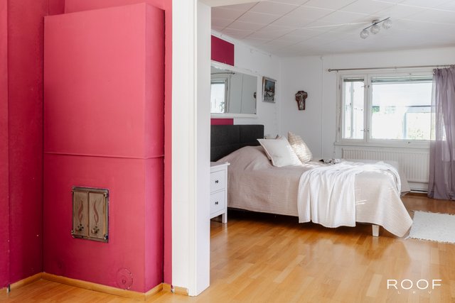 Talossa on kivaa persoonallisuutta, tyylikkäät portaat henkivät kodin omaa tarinaa ja ajattomuutta. Makuuhuoneita on useita. Jokin huoneista voisi toimia hyvin myös työskentelytilana tai harrastehuoneena. Yläkerran aulatilasta on pääsy tilavalle parvekkeelle, joka on miellyttävä paikka nauttia rauhasta ilta-auringosta.