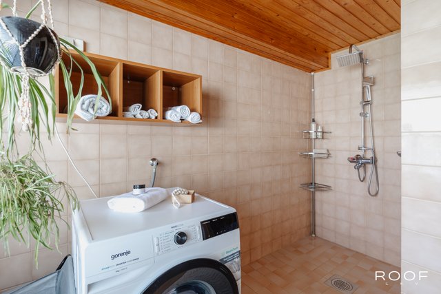 - Suihku, pesukoneliitäntä, ja lattialämmitys (sähköllä)