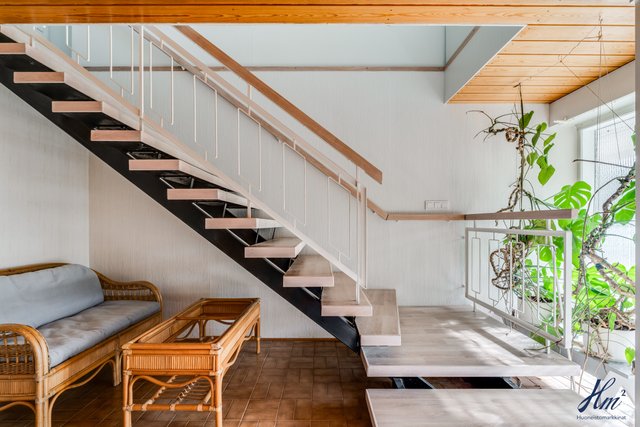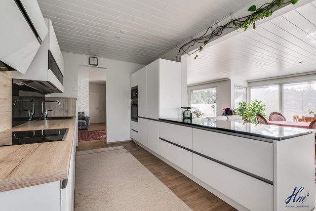 Yläkerran pinnat, lattia, keittiö (Noblessa) ja osittain sähköjä uusittu 2016.