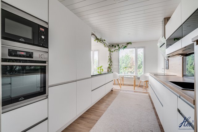 Oh+k+3mh+th+2 kpl wc+kph+ph+sauna +allash.+ khh+2 kpl vh+ tekninentila + v + eteisaula + urheiluvälinev.+lämmin autotalli+ parveke