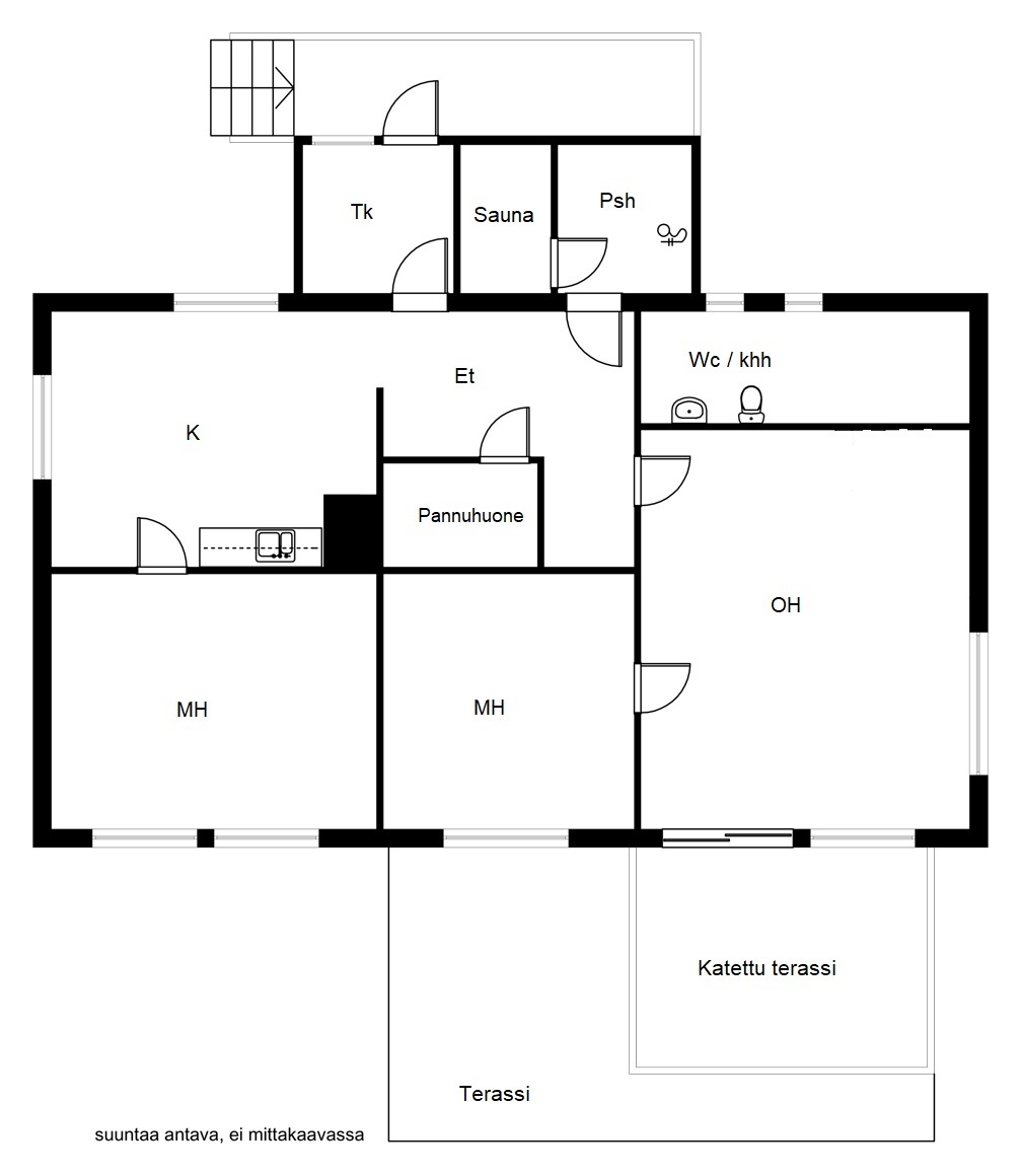 - Yläkerrassa lisäksi avointa, eristettyä tilaa, johon mahdollista rakentaa lisää tiloja. Pinta-alatiedot on saatu rakennuspiirustuksista ja myyjältä, eikä niitä ole tarkistusmitattu. Pinta-alat voivat poiketa olennaisestikin nykymääräysten mukaan mitattavista pinta-aloista.