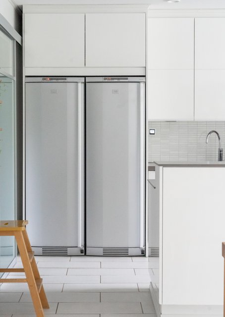 - Jääkaappi, erillinen pakastin, uuni, liesi, liesituuletin, astianpesukone, ja keittiösaareke