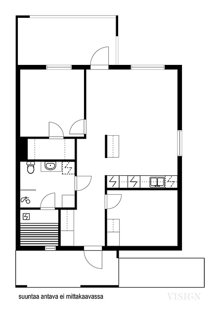 - Allaskaappi, lattialämmitys, peilikaappi, suihku, pesukoneliitäntä, suihkuseinä, wc-istuin, ja kiinteät valaisimet