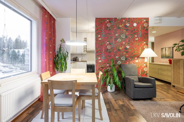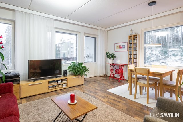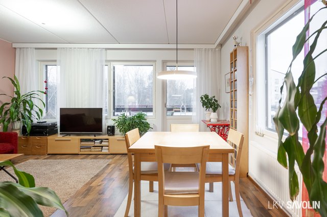 Valoisa ja hyväkuntoinen 61,5m² kaksio sijaitsee 3/4 kerroksessa. Kulmahuoneistosta avautuvat rauhalliset, metsäiset näkymät ja näet samalla myös mukavasti Jyväsjärveä sekä kaupungin keskustaa horisontissa.