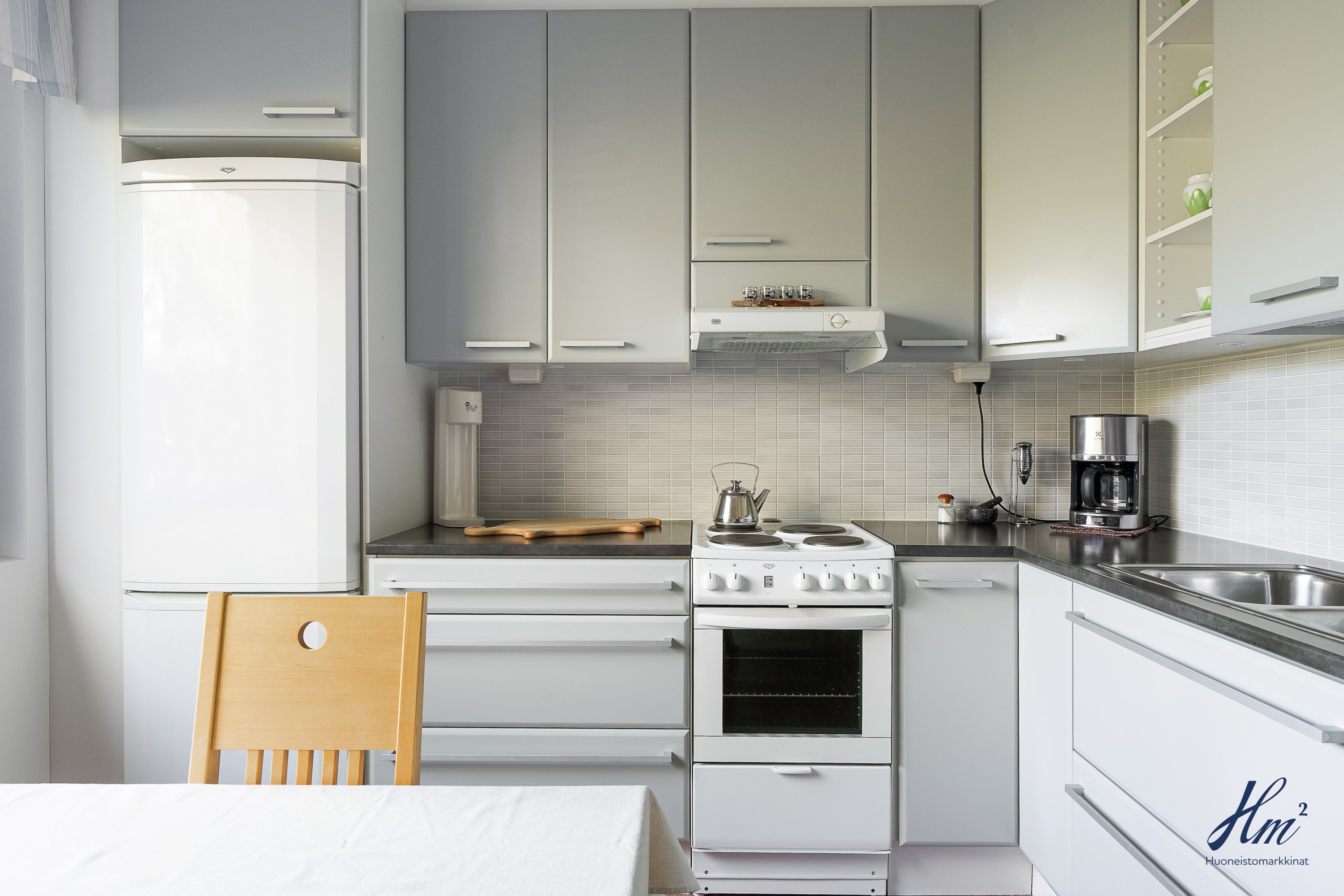 - Jääkaappipakastin, liesi, liesituuletin, ja uuni