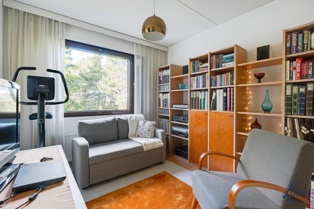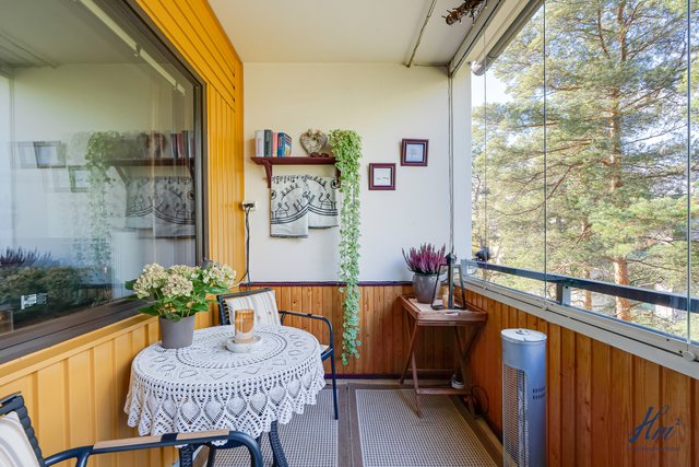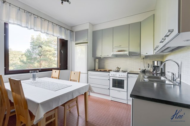 Kodin pinnat ovat siistit ja keittiö on uusittu vuonna 2010. Huoneisto sijaitsee talon kuudennessa kerroksessa, ja asunnosta avautuu vehreät näkymät ympäristöön.