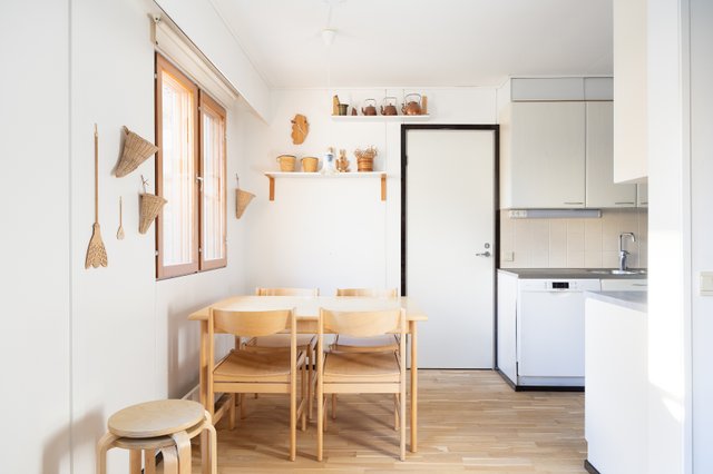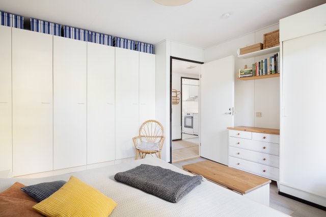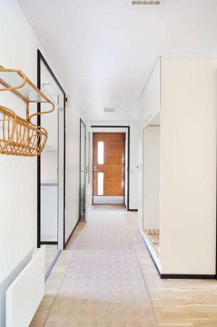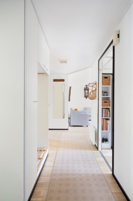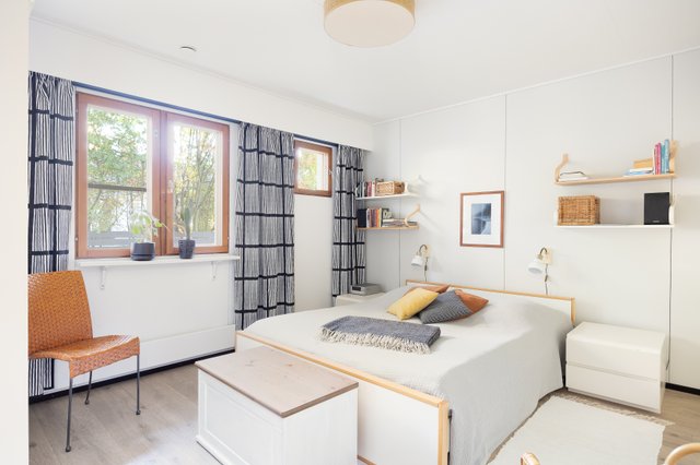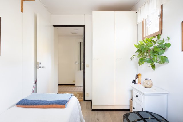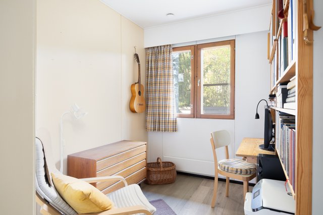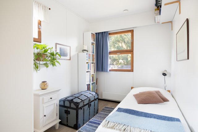 - Lattia: parketti (hiottu vuonna 2024). Seinät: maalattu lastulevy.