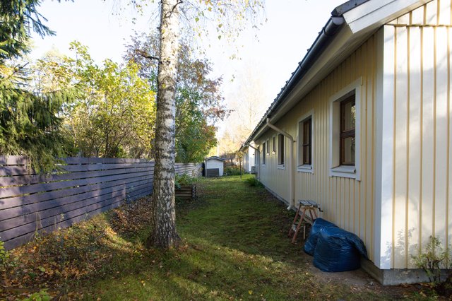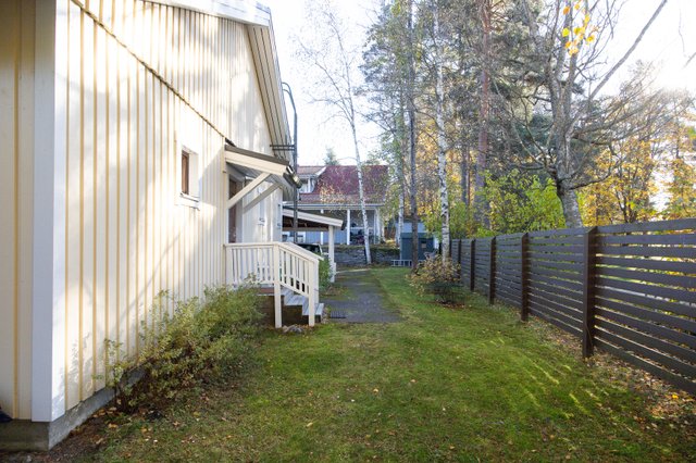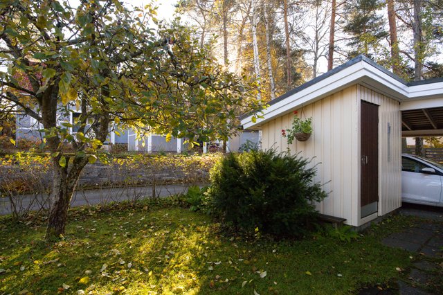Yksitasoinen paritalo hyvillä liikenneyhteyksillä ja läheltä koulua. Oma autokatos!