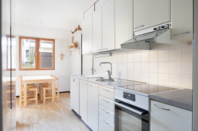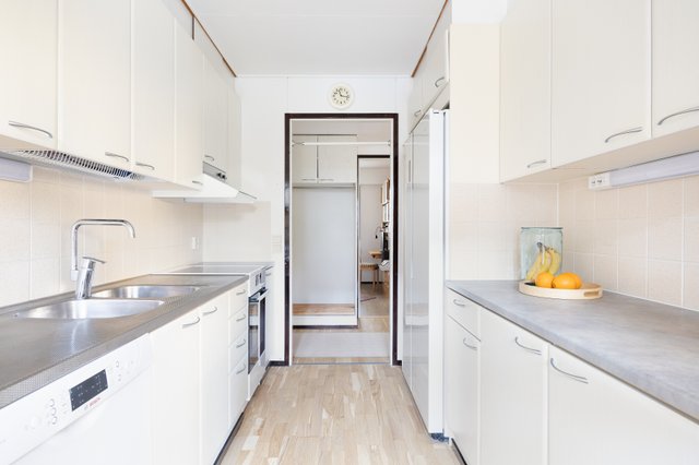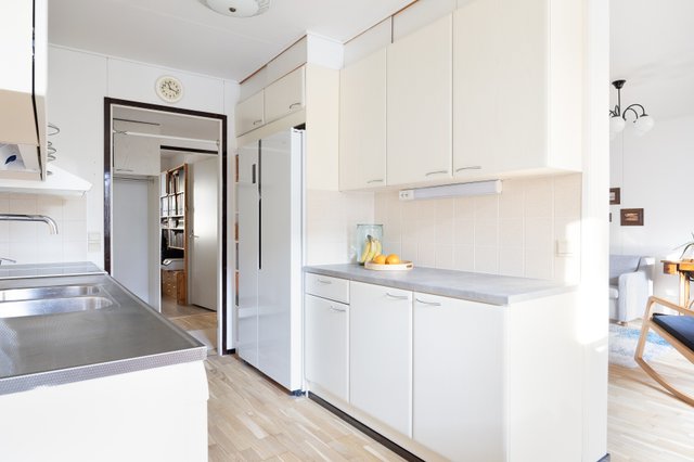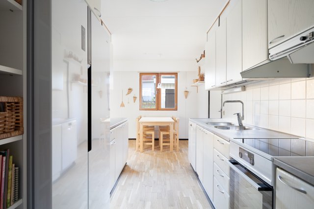 - Keittiön ovet ja työtasot vaihdettu vuonna 2015. Varusteet: astianpesukone (2015), jääkaappi/pakastin (2019), induktioliesi (2019) ja liesituuletin. Työtaso: Laminaatti. Lattia: Parketti.