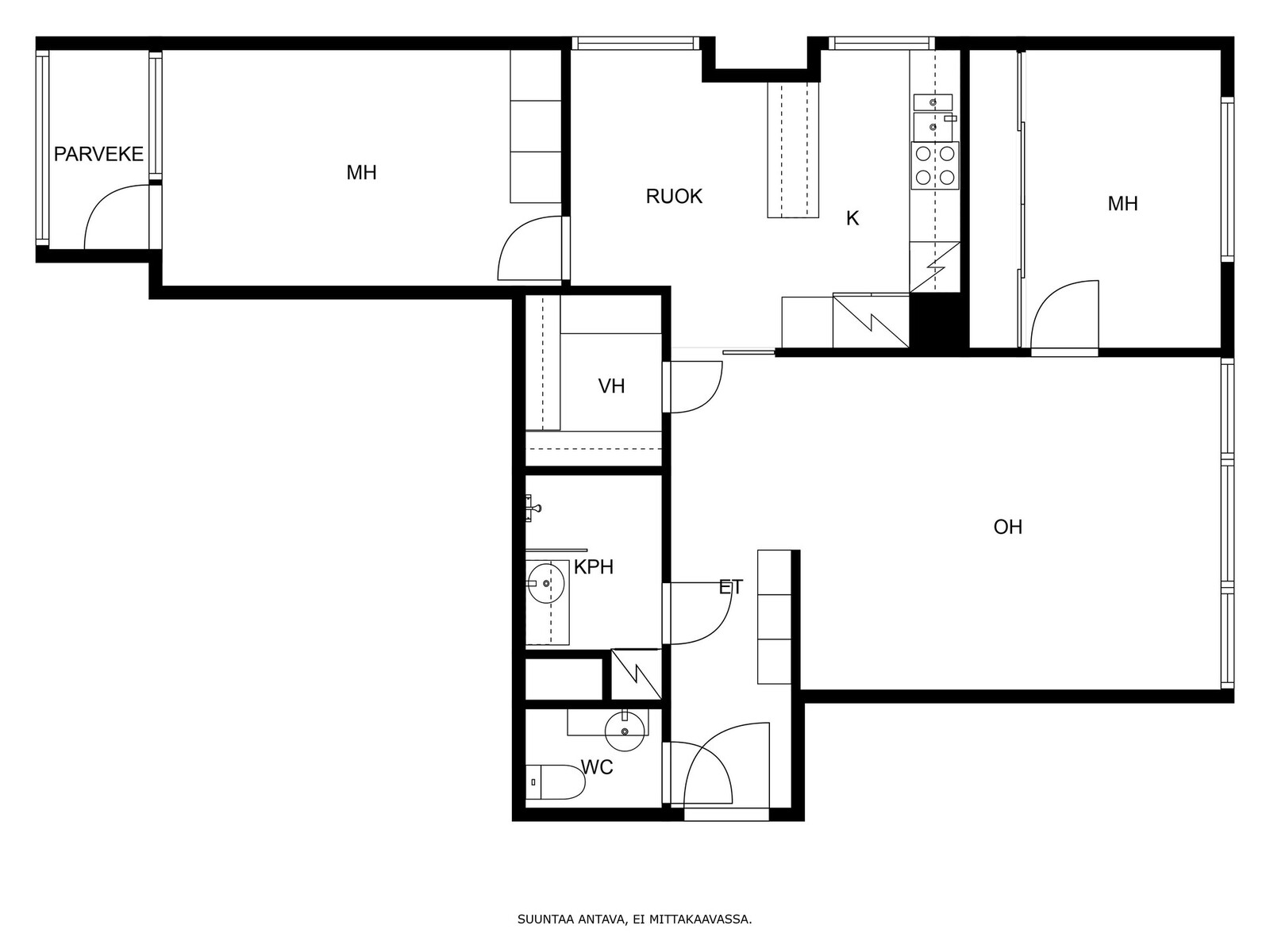 - Lisätietoja sisältyvistä varusteista: kaapistot, sälekaihtimet/rullaverhot, verhotangot