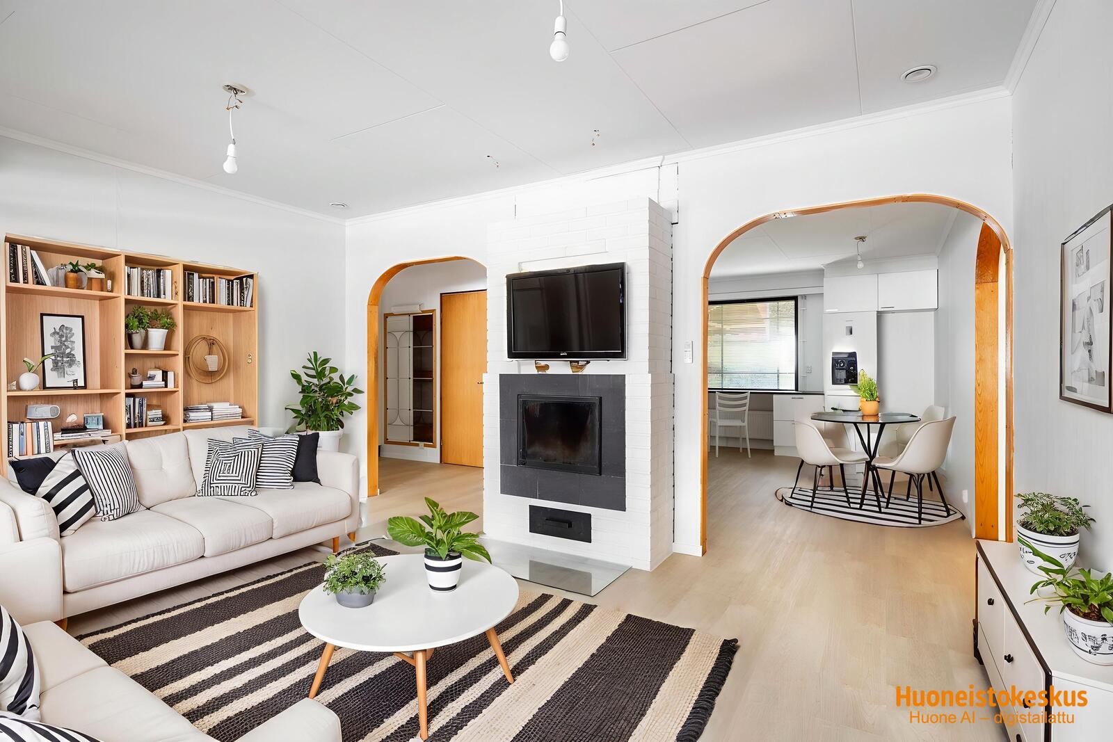 Komealla suojaisalla 1055 m2 rinnetontilla yksitasoinen kuntotarkastettu omakotitalo heti muuttovalmiina. Talo on puuelementtirakenteinen, tiiliverhoiltu ja harjakattoinen.