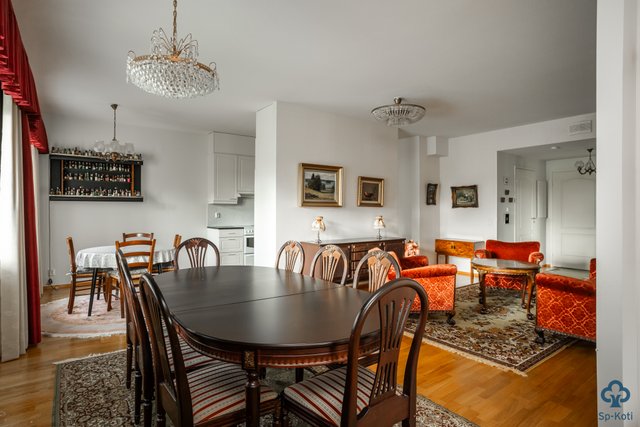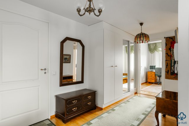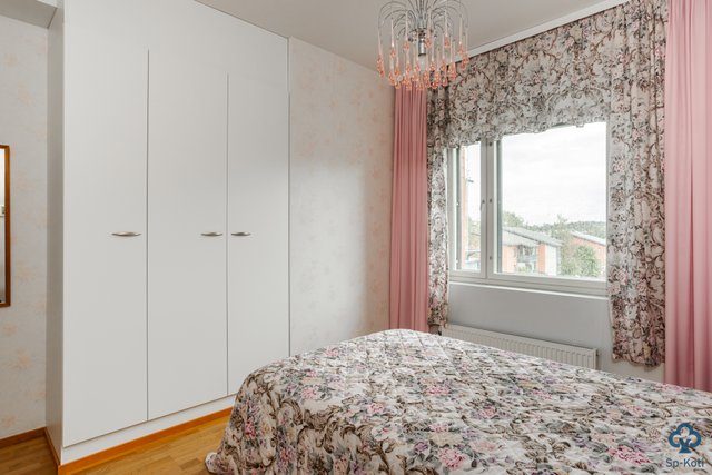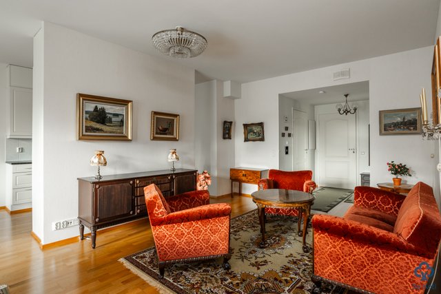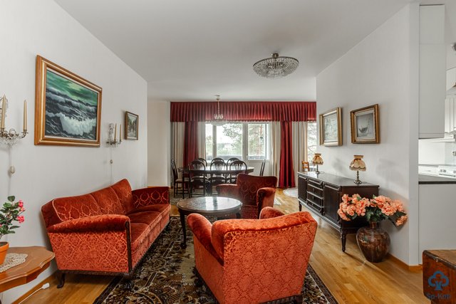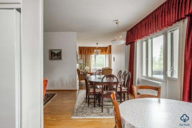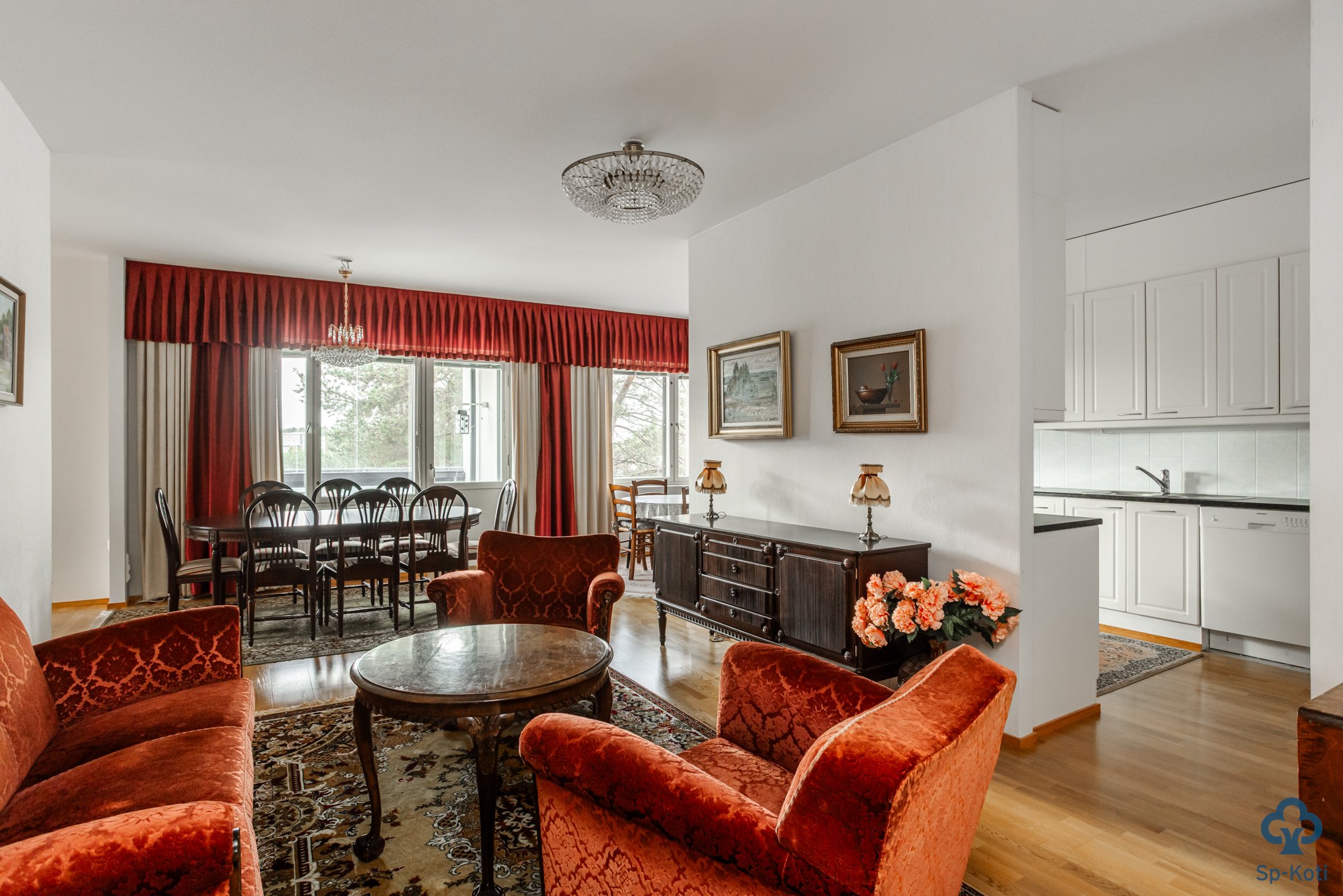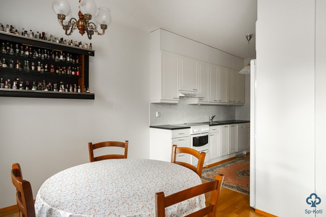 Asunnon 106,5 neliötä muodostavat todella tilavan pohjaratkaisun, joka on muokattavissa juuri omiin tarpeisiin sopivaksi. Tällä hetkellä olohuoneen ja yhden makuuhuoneen välinen seinä on poistettu, mikä luo avaruutta ja korostaa olohuoneen valoisuutta. Tarvittaessa makuuhuone on kuitenkin edelleen helppo erottaa väliseinällä olohuoneesta. Keittiö on tilava ja kaappi- sekä laskutilaa löytyy runsaasti. Lisäksi ruokapöydälle on luonnollinen paikka keittiön jatkeena. Kylpyhuoneessa on muun muassa lattialämmitys ja paikka omalle pyykinpesukoneelle, mitkä lisäävät arjen mukavuutta. Lisäksi asunnossa on oma sauna, jonka löylyissä voi rentoutua päivän päätteeksi.