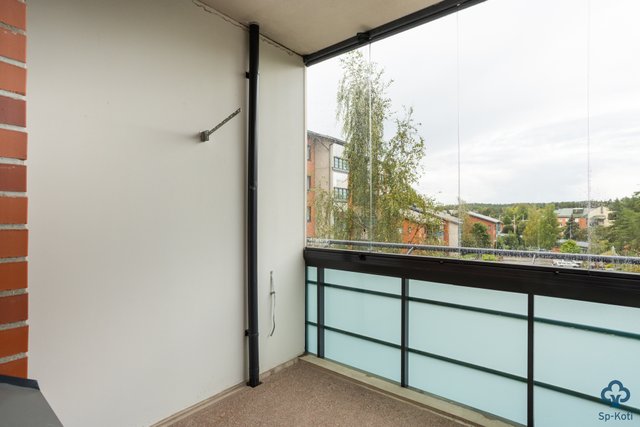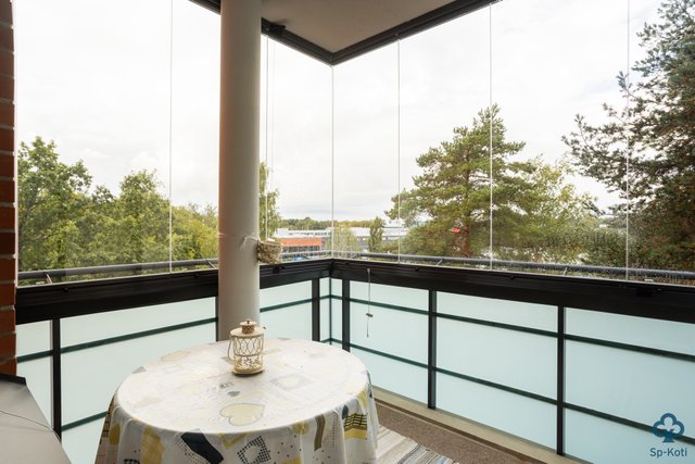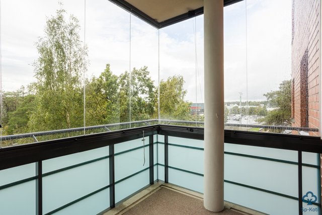 Asunnossa on kaksi lasitettua parveketta, jotka avautuvat etelän ja lännen suuntiin. Neljännen kerroksen parvekkeista onkin viihtyisä ja aurinkoinen maisema pitkälle Länsikeskuksen yli. Tämä asunto on kulmahuoneisto, mikä luo hyvät puitteet rauhalliselle elämiselle. Säilytystilaa on myös runsaasti, sillä vaatehuoneen ja kaapistojen lisäksi kellarissa on oma tilava varasto.