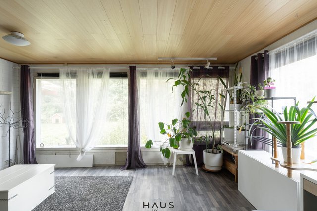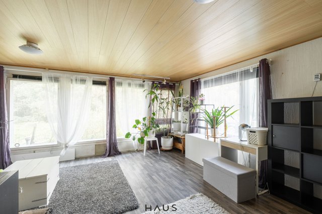 Talo on tilava, makuuhuoneita on tällä hetkellä kolme, joista yksi on mahdollista jakaa tarvittaessa kahdeksi makuuhuoneeksi. Olohuone yhdistyy osin ruokailutilaan ja tunnelma on kodikas. Tilojen välissä on 2020 uusittu varaava takka, joka toimii tehokkaan tukevana lämmitysmuotona.
