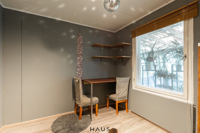 Talon vanha pannuhuone on muutettu työtilaksi, joten jos kaipaat erillistä työhuonetta tai vastaanottotilaa omalla sisäänkäynnillä, täällä se on valmiina.