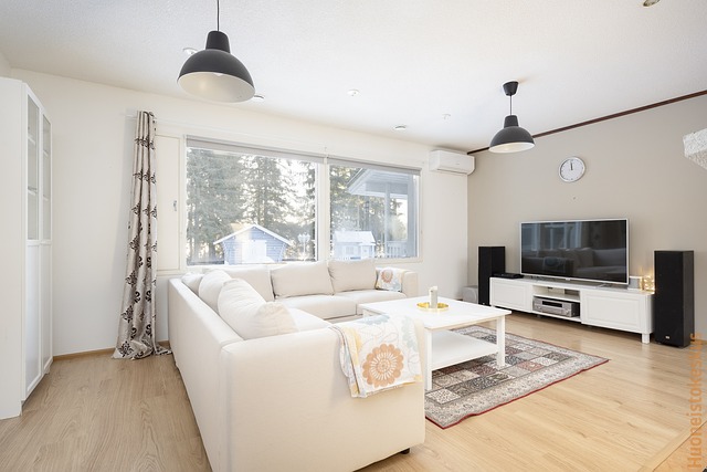 Lämmitysmuotona on vesikiertoinen lattialämmitys kaukolämmöllä. Ilmalämpöpumppu on hankittu viilennystä varten.