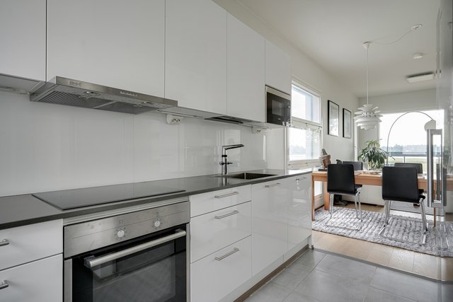 Avara olohuone ja ruokailutila muodostavat kodin sydämen, jota jatkaa suuri lasitettu parveke. Parvekkeelta voit nauttia etelään avautuvista näkymistä ja merituulesta. Keittiössä yhdistyy käytännöllisyys ja tyylikkyys. Modernissa keittiössä on A la Carte -kalusteet ja laadukkaat Siemensin kodinkoneet.