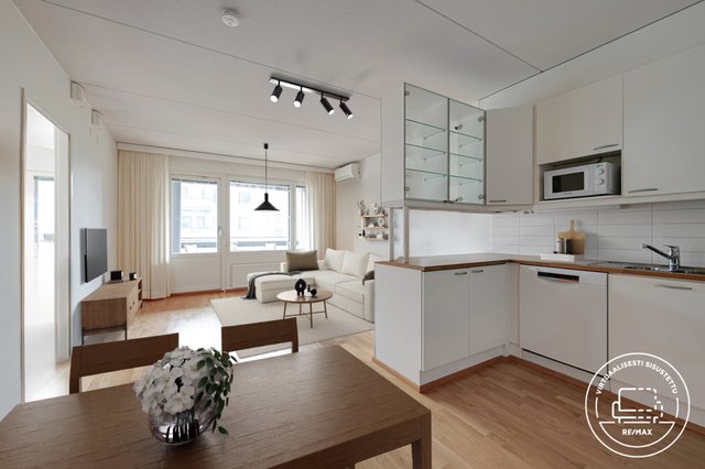- Sälekaihtimet kaikissa ikkunoissa, ilmalämpöpumppu viilennykseen, parvekkeen sälekaihtimet, parvekkeen puiset lattialaatat, eteisen ja makuuhuoneen kattovalaisimet.