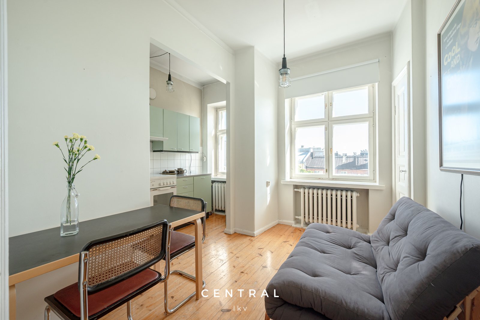 Ljus och stämningsfull, genast ledig översta 7:e våningens tvårummare, med utsikt mot trevlig öppen innergård mot söder samt över hustaken mot norr. I husbolaget har man påbörjat ett balkongsprojekt och denna bostad är anmäld med, vilket betyder att det kommer att byggas en söderbalkong i samband med köksutrymmet inom år 2026. Kostnaden för projektet allokeras till de berörda aktionärerna då allt är klart.