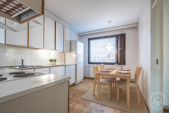 Asunnon etelään suuntautuva lasitettu parveke tarjoaa oivan paikan rentoutua ja nauttia auringonpaisteesta. Tilavan keittiön yhteydessä on käytännöllinen apukeittiö/kodinhoitotila. Kylpyhuone on varusteltu kaikilla tarpeellisilla mukavuuksilla, ja saunan sähkökiuas takaa rentouttavat löylyt.