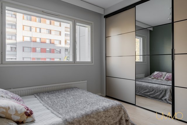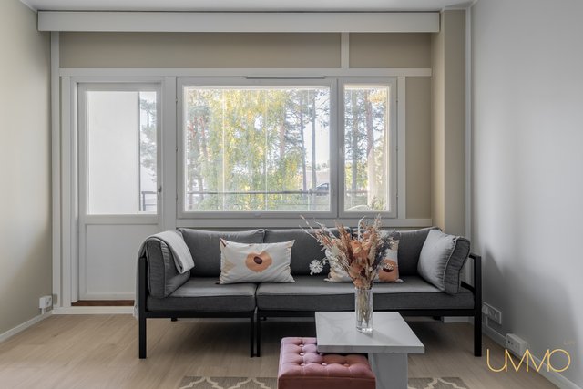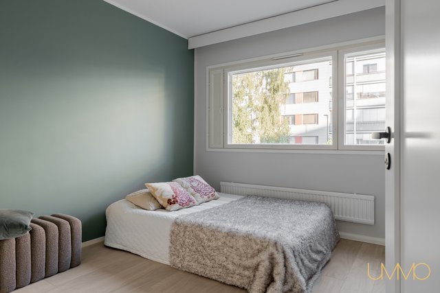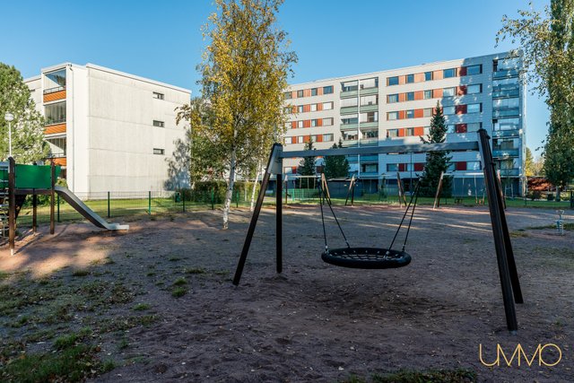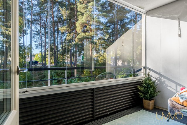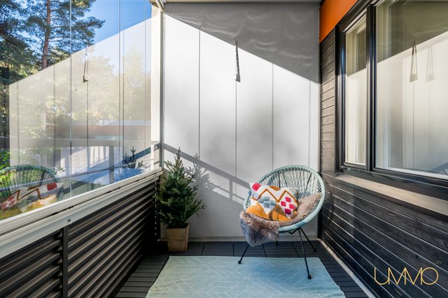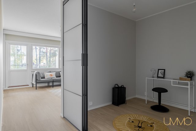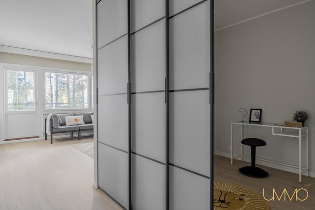 Asunto sijaitsee toisessa kerroksessa, ja talossa on hissi, mikä helpottaa arkea. Esteettömyys on taloyhtiössä muutenkin esimerkillisesti huomioitu. Lasitettu parveke avautuu etelään, tarjoten vehreät näkymät ja ihanteellisen paikan rentoutumiseen. Makuuhuoneessa ja eteiseesä on hyvin suunnitellut säilytysratkaisut, ja olohuoneesta liukuovilla erotettu työtila tuo lisää joustavuutta tilankäyttöön.
