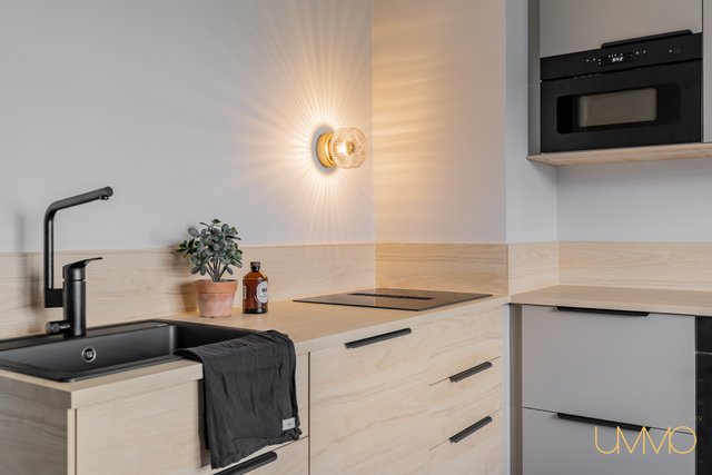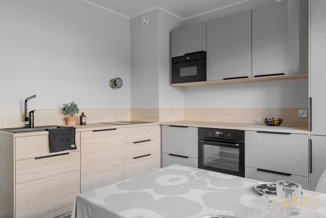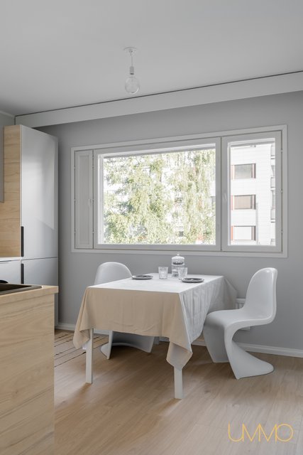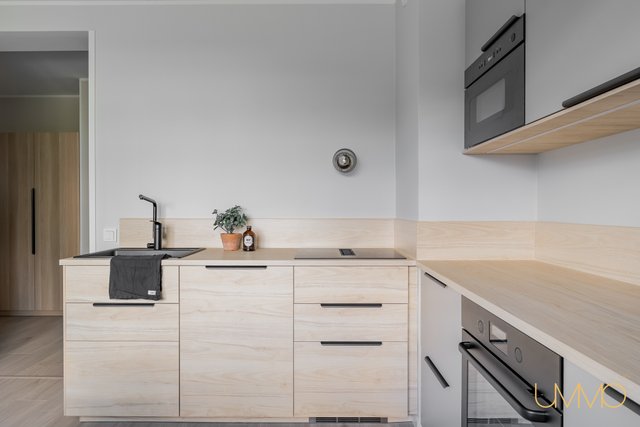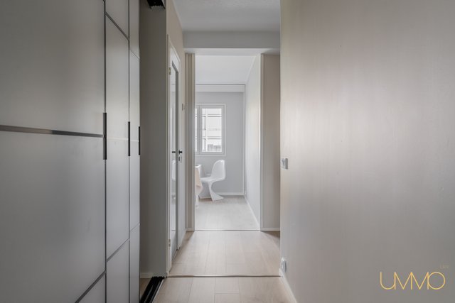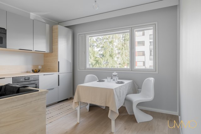 Asunnossa on juuri valmistunut laajamittainen remontti, ja sen varustukseen kuuluu muun muassa upouudet integroitu tiskikone, induktioliesi liesituulettimella varustettuna ja kiertoilmauuni, jotka tekevät keittiöstä sekä käytännöllisen että tyylikkään. Kylpyhuoneessa on sähköinen lattialämmitys ja tilaa pesutornille, mikä lisää arjen mukavuutta.
