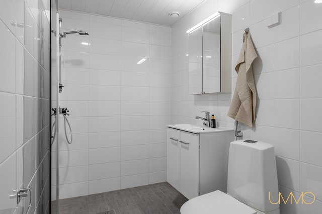 - Suihkuseinä, pesukoneliitäntä, peilikaappi, suihku, wc-istuin, allaskaappi, ja bidee-suihku