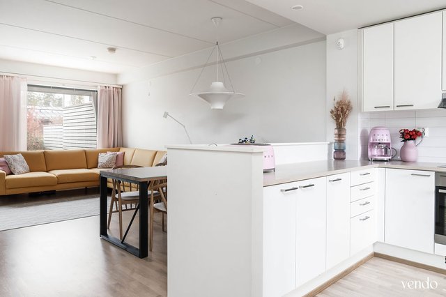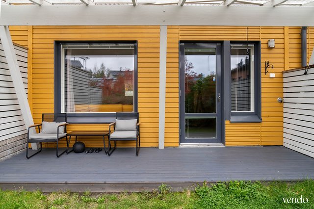 Kodikkaassa olohuoneessa on kaunis parkettilattia, ja moderni keittiö on varustettu laadukkailla kodinkoneilla. Kylpyhuoneessa on lattialämmitys, mikä tuo ylellisyyttä arkeen. Lisäksi oma suojaisa terassi ja piha-alue tarjoavat ihanteellisen paikan rentoutumiseen ja ulkoiluun. Taloyhtiössä on yhteinen leikkipaikka lapsille helpottamaan lapsiperheiden arkea.