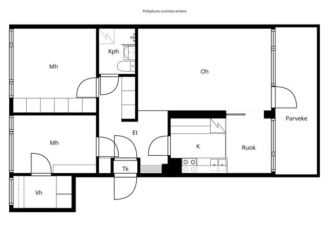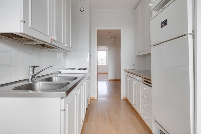 Asunto käsittää kaksi makuuhuonetta, vvathuoneen, olohuoneen, keittiön sekä kylpyhuoneen. Olohuoneessa ja makuuhuoneissa on laminaattilattiat. Kylpyhuoneessa on laatoitettu lattia ja seinät, ja siellä on pesukoneliitäntä.