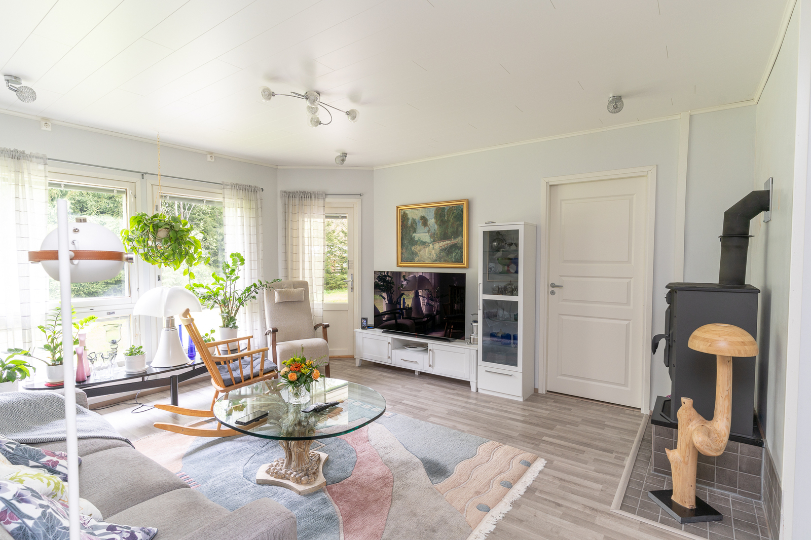 - Olohuoneessa lattia laminaattia ja seinät maalatut. Käynti terassille. Kevyt takka.