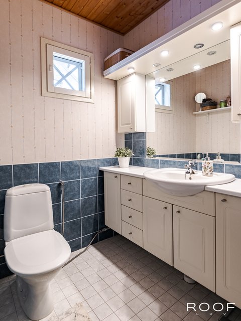 Kylpyhuoneen ja saunan yhteydessä on mukavasti kaappitilaa, joka helpottaa arjen askareita. Lisäksi asunnossa on erillinen wc, mikä lisää käyttömukavuutta. Lattialämmitys kylpyhuoneessa ja wc:ssä on jalalle miellyttävä.