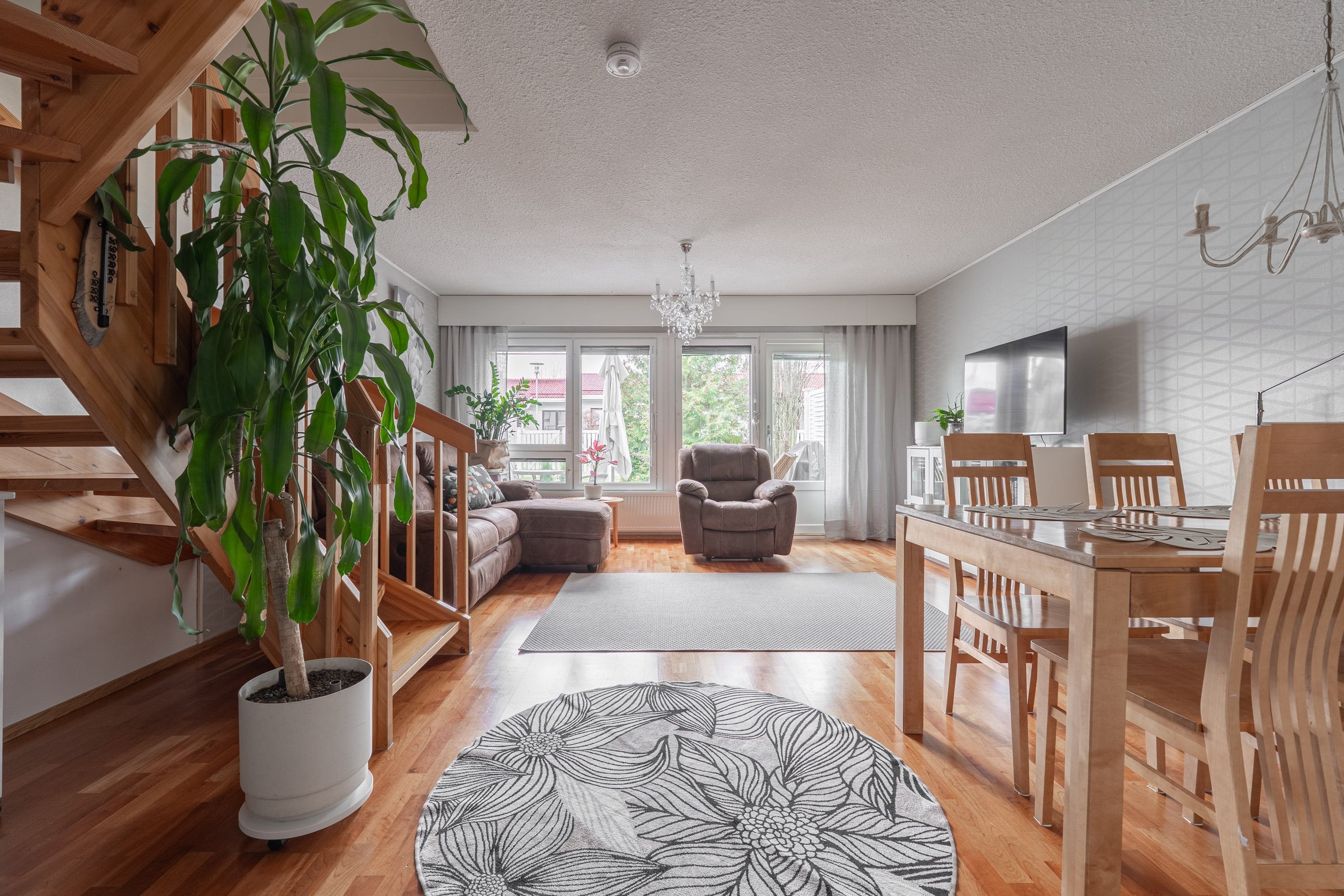 Tattikujalla, Kuopion rauhallisessa Pitkälahdessa, odottaa viehättävä rivitaloasunto uutta omistajaansa. Tämä valoisa ja kodikas 80 neliömetrin koti tarjoaa mukavat puitteet arkeen ja vapaa-aikaan. Asunto on rakennettu vuonna 1989, ja se on hyvässä kunnossa, joten pääset muuttamaan sisään ilman suuria remonttihuolia.