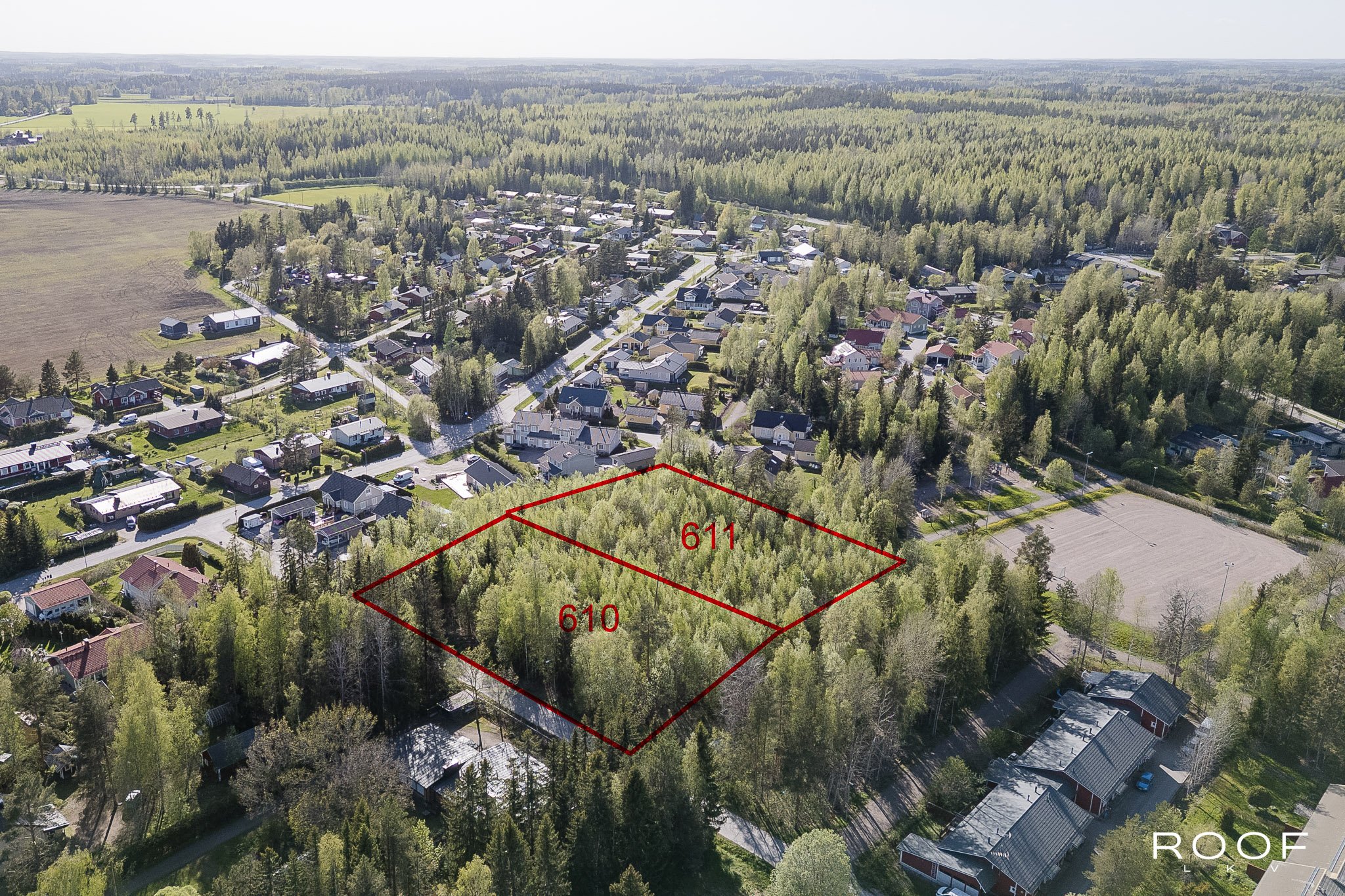 - Tontin -610 pinta-ala 5263 m2 ja -611 p-a 3936 m2.
