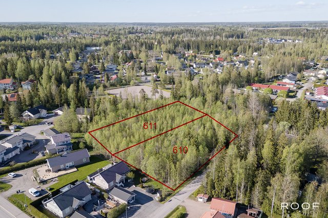 - Tontti -610 ro e=0,25 II ja -611 ro e=0,20 II Osa kiinteistöistä on tiealuetta, kunnan laskelman mukaan kokonaisrakennusoikeus on 2067 m2. Lukema saattaa muuttua tarkistusmittauksessa ja tonteiksi muodostettaessa.