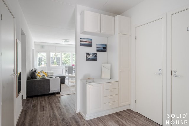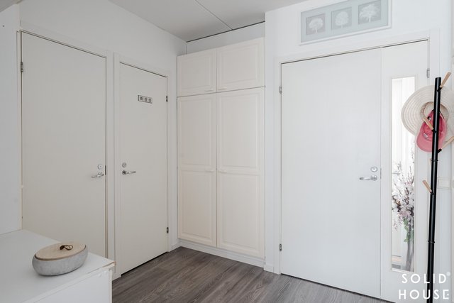 - Kiinteät kaapistot, pieni ullakkovarasto ja erillinen kylmä varasto etupihan puolella (yhtiöjärjestyksen mukaan 8 m2).