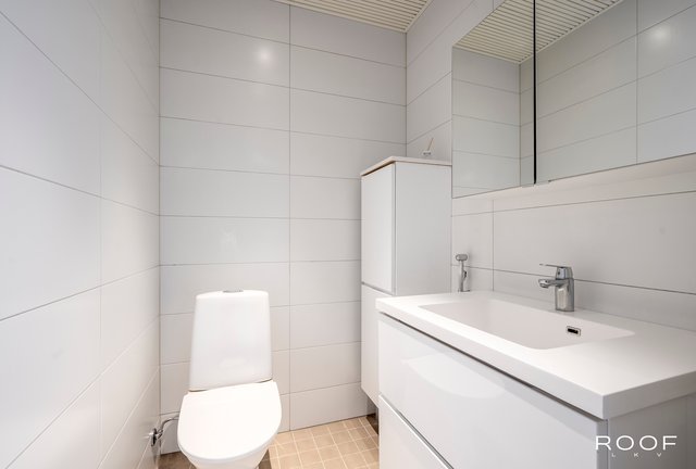 - VARUSTUS: Pesukoneliitäntä, kaapisto, allas, hana, suihku. SEINÄT: Maali. Suihkutila: Laatta. LATTIA: Laatta.