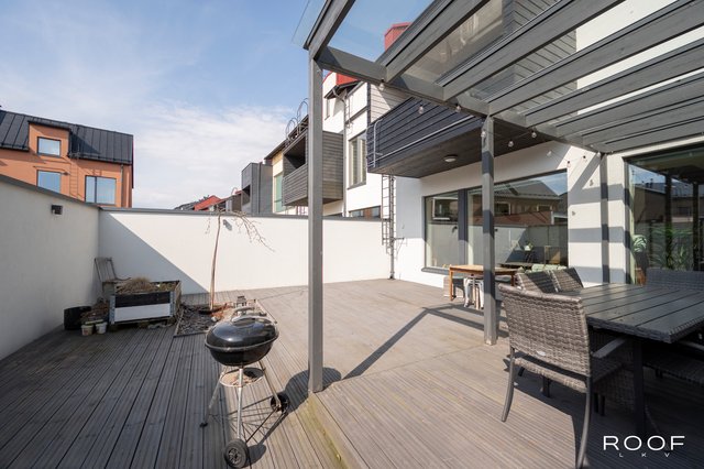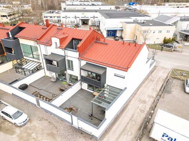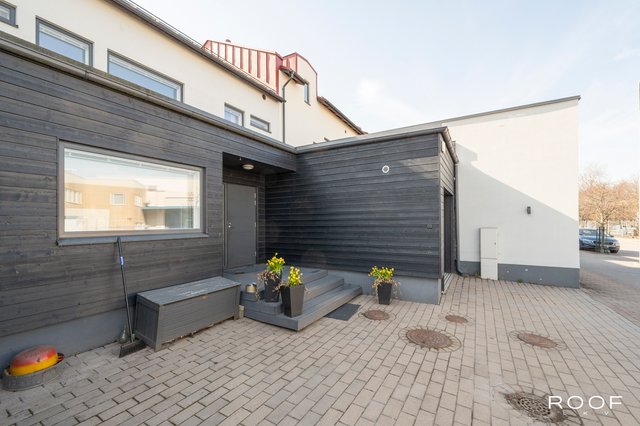Kahden kerroksen talossa on myös työtila, kodinhoitohuone ja erilliset wc:t molemmissa kerroksissa. Ulkotilat eivät jää huomiotta, sillä talossa on oma terassi, joka tarjoaa mahdollisuuden nauttia ulkoilmasta omassa rauhassa.