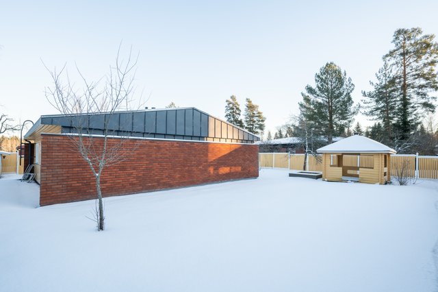 2023: Räystäskourujen (piilokouru) korjaus / maalaus kesä 2023. Uudet syöksytorvet Ruukki / 100 mm vaihdettu. Kattoluukku avattu vesikatolle Materiaali: SSAB Pural Matta BT TSP 0,6 RR23. Piipun uudelleen muuraus vesikaton osuudelta. Piipun pellitykset + sadehattu uusinta. Uudet lumiesteet Pisko Pyöreämalli. Tuuletusta parannettu yläpohjassa -> lisätty 2x alipainetuulettimia. Pakkasmanteli asennettu. Ikkuna-, muuri-, räystäs- ja reunapellitykset uusittu. Päätykolmiot ja tiilimuurin yläpuoli pelitetty. Lahovaurioiset paneelit korjattu.