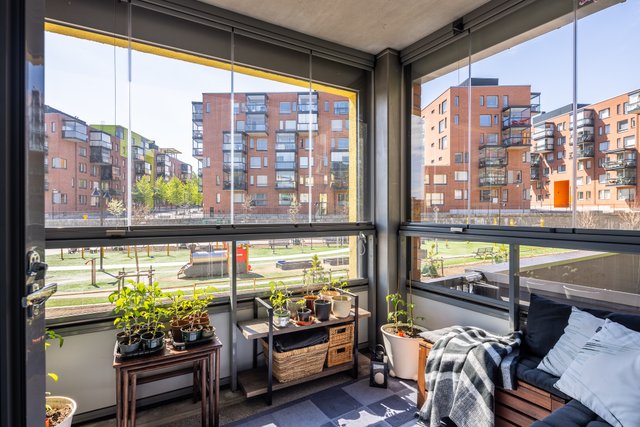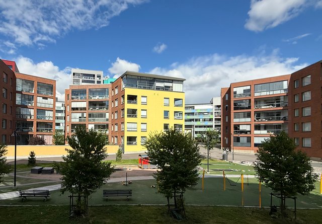 Sijainti Konepajan ratas-taloissa puiston laidalla on yksi alueen parhaista. Tänne eivät liikenteen äänet kantaudu.